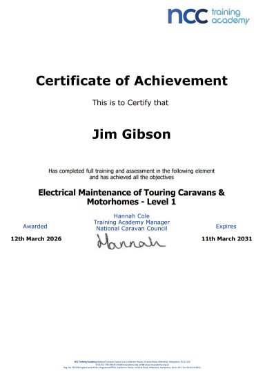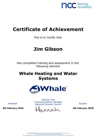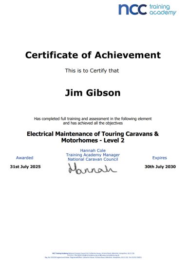 JMG Caravan Services - Certificates / Accreditations