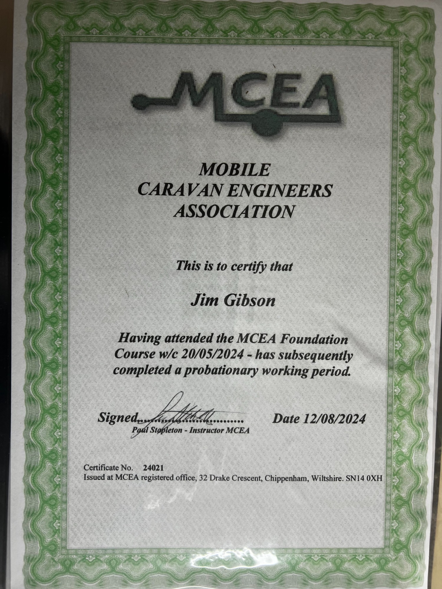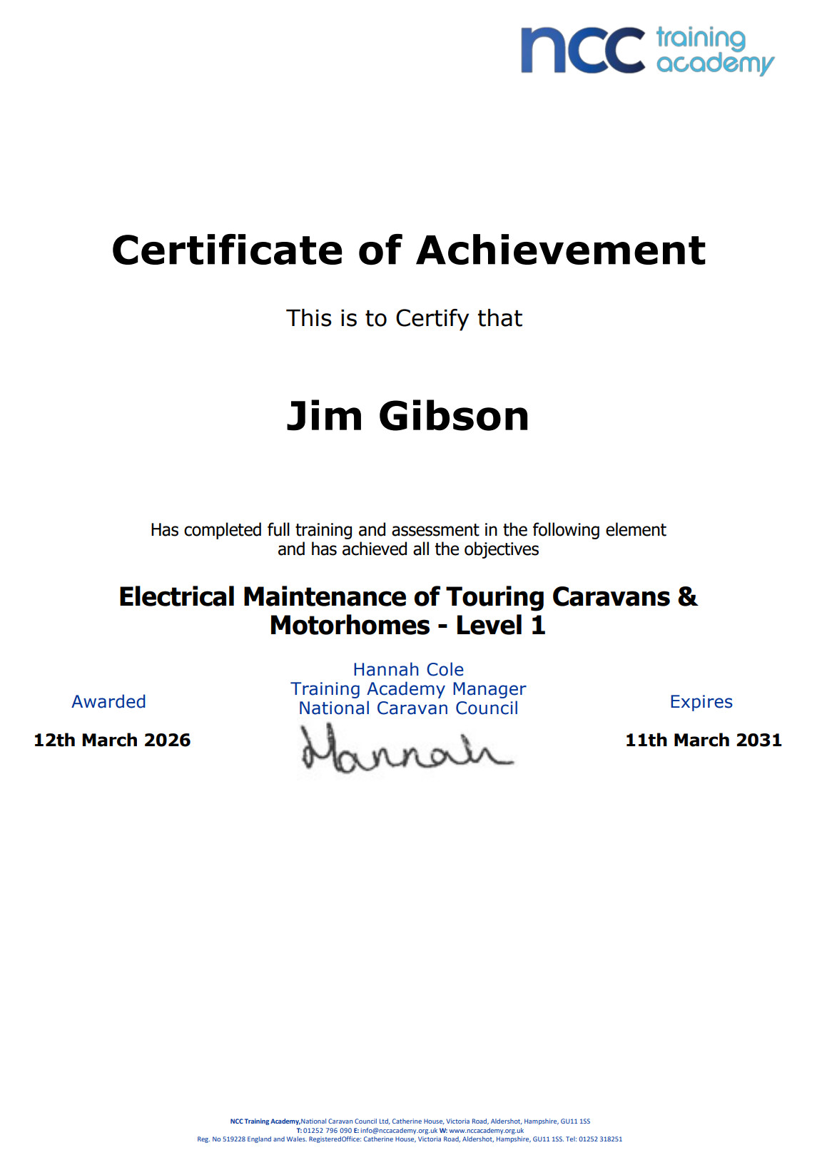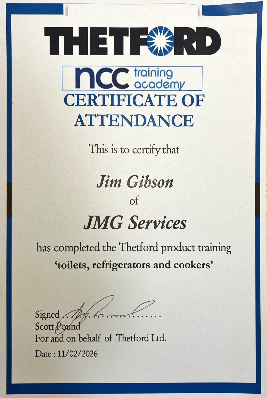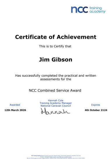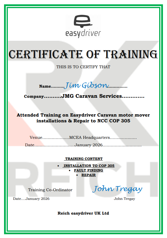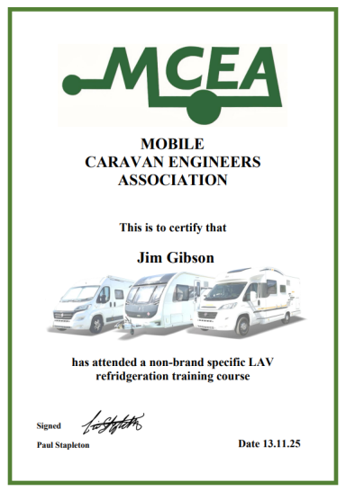 JMG Caravan Services - Certificates / Accreditations
