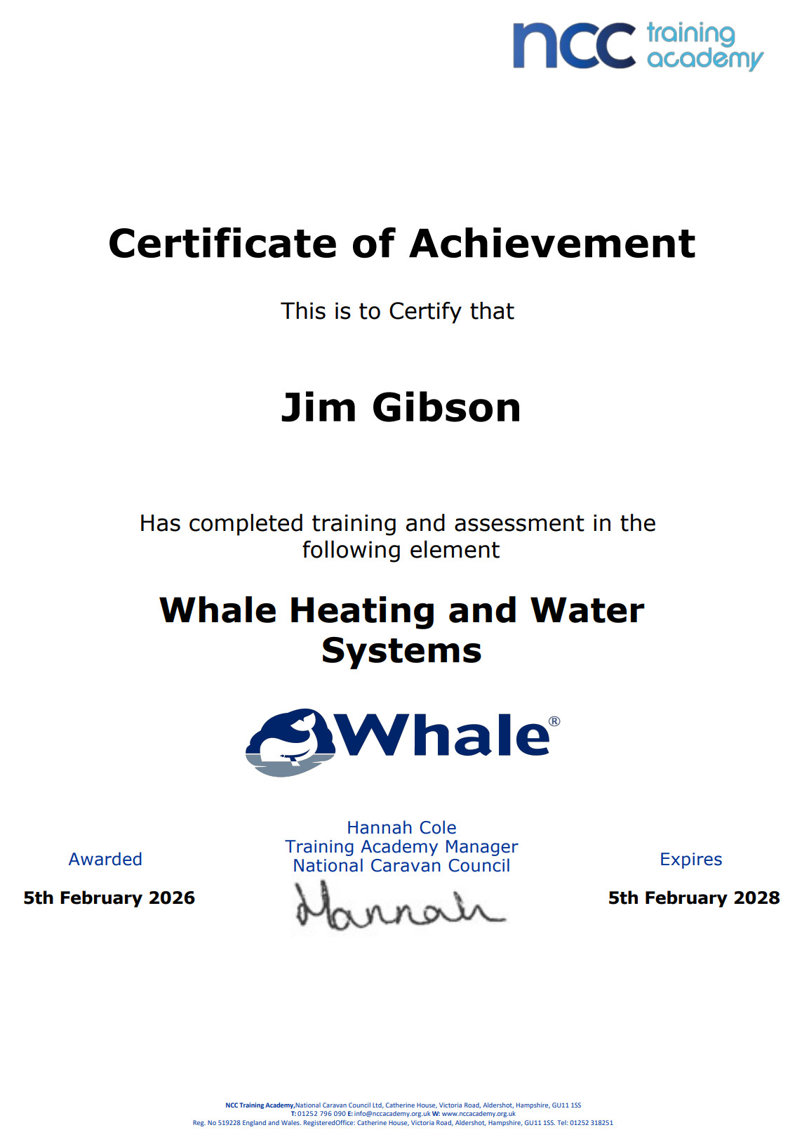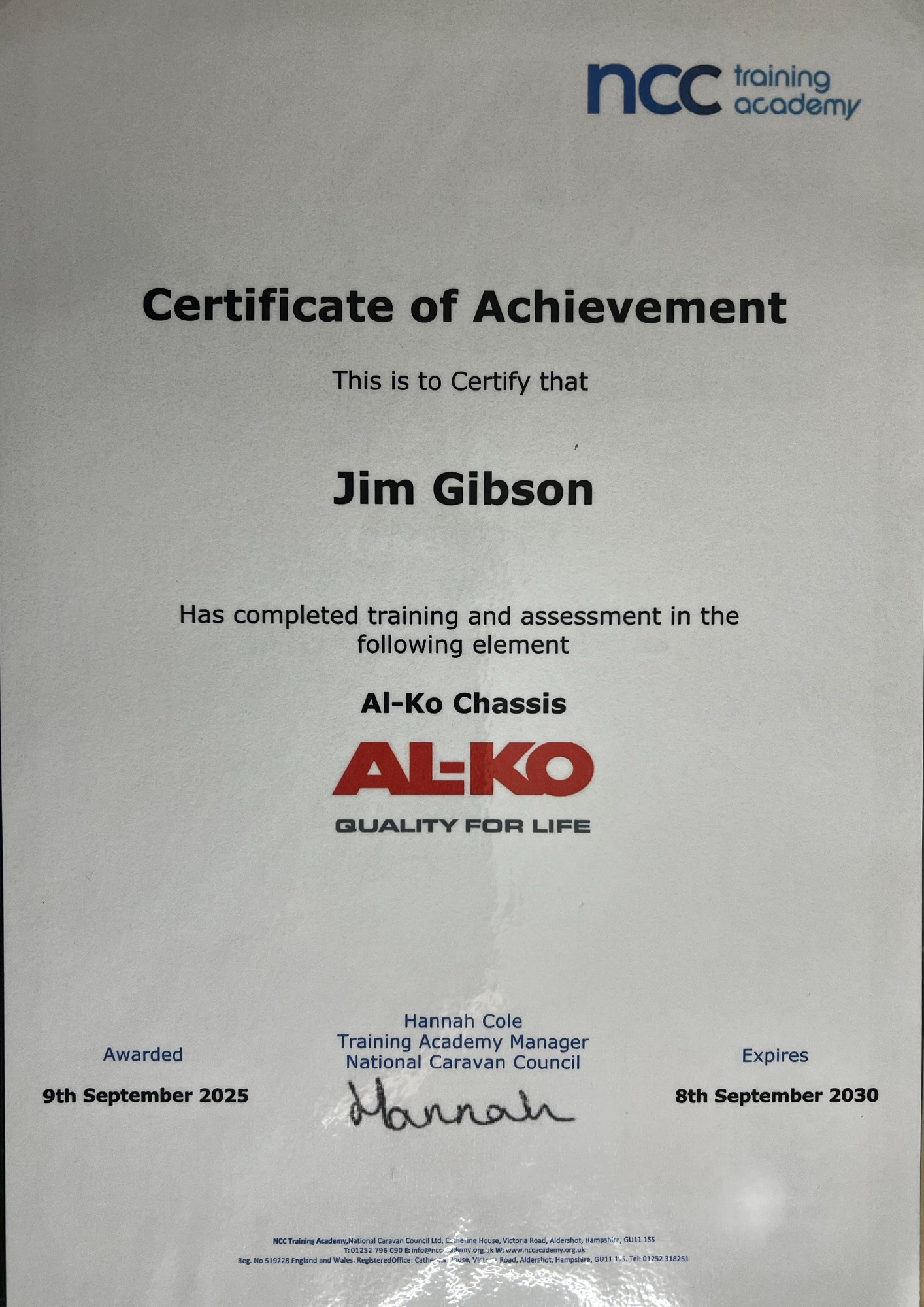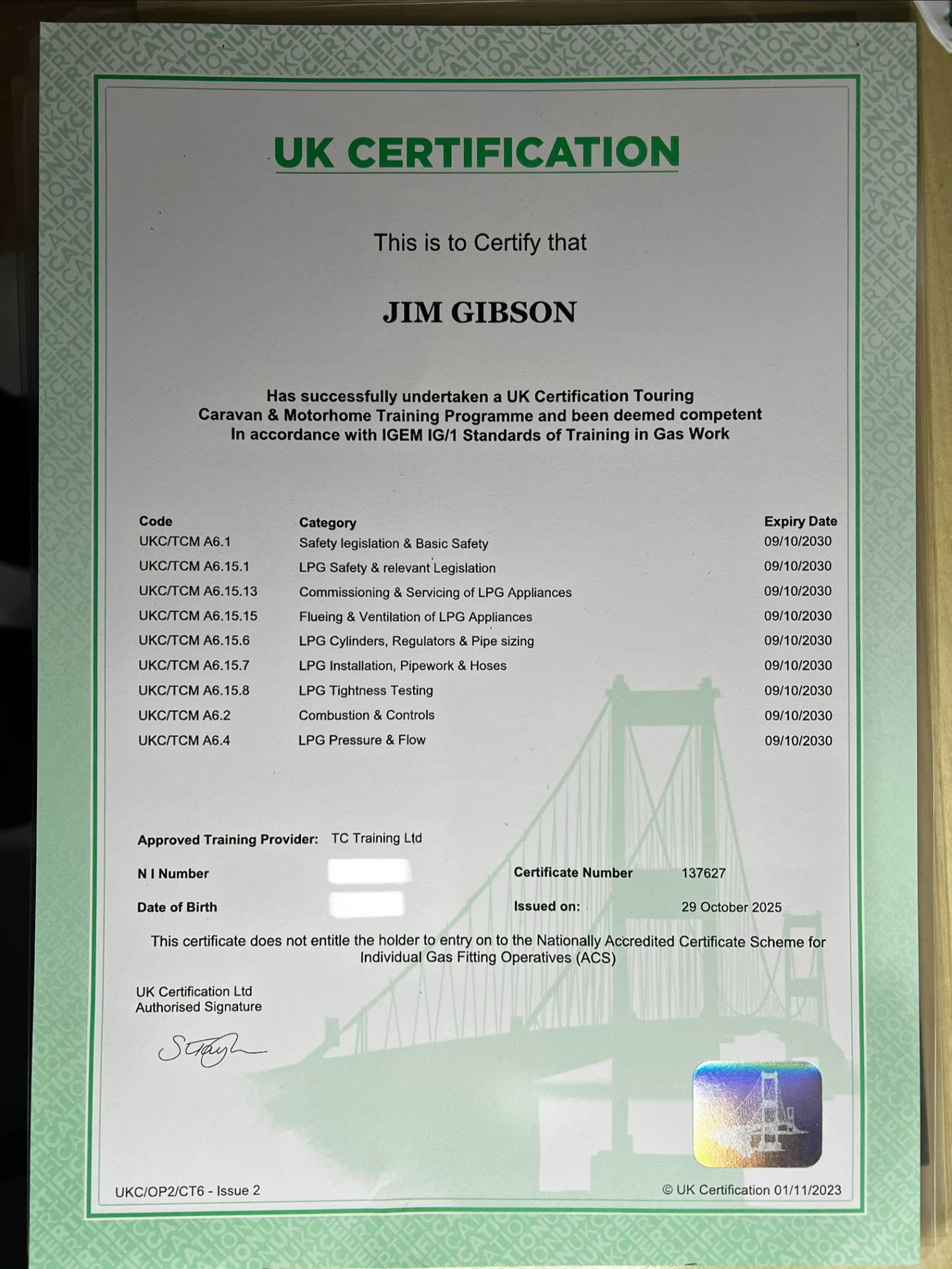 JMG Caravan Services - Certificates / Accreditations